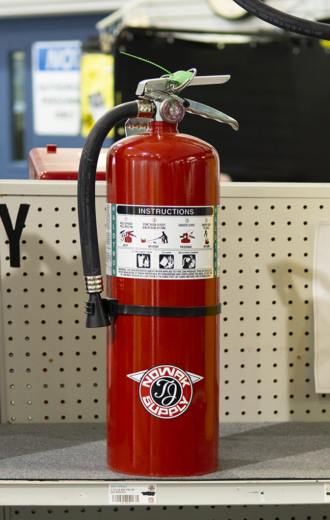 ABC Multipurpose Extinguishers have more than one classification of fire. An extinguisher with an ABC rating is suitable for fires involving ordinary combustibles, flammable liquids, and energized electrical equipment. An extinguisher used with multiple hazards will include a symbol for each hazard type. Every TJ Nowak extinguisher is clearly marked for its intended use. One of our fire experts would be happy to guide you through our large selection to find the correct extinguisher for you.