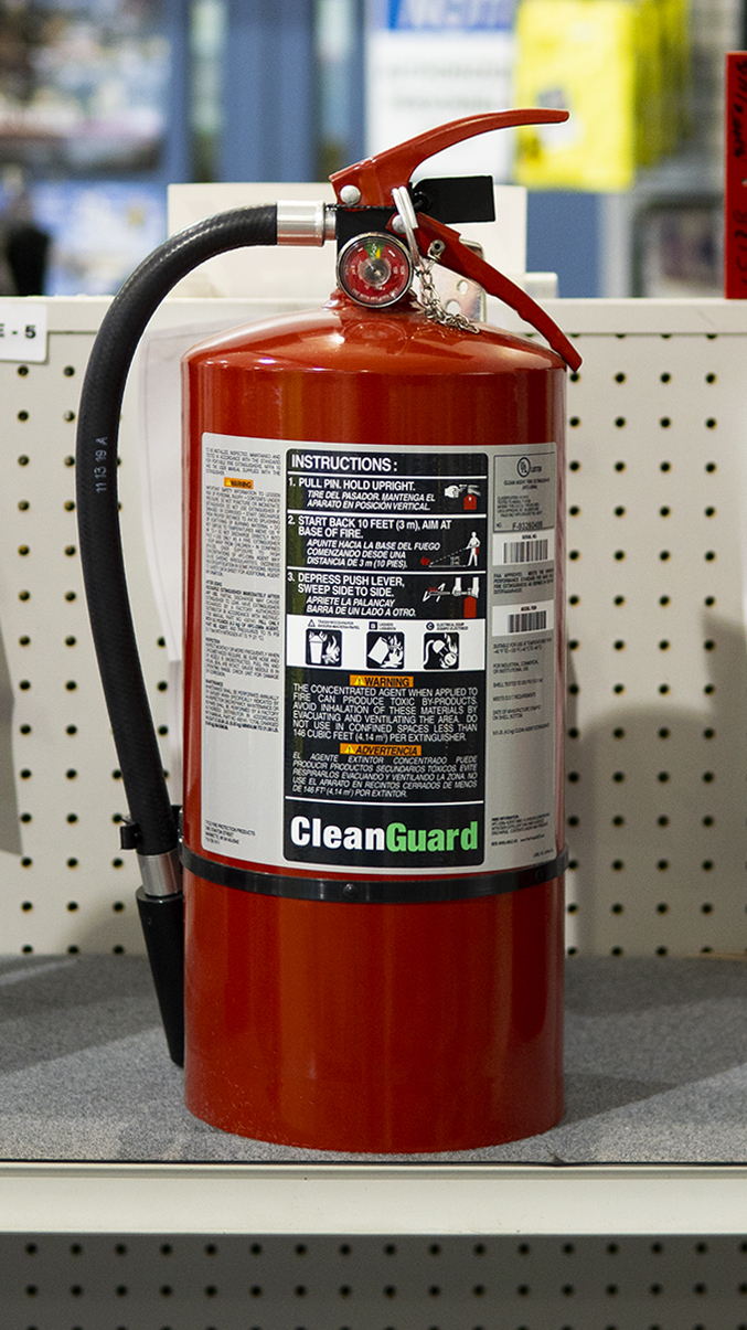 Shop extinguishers, signs, brackets, covers, and accessories in our Fire Protection Aisle—refilled, tagged, and certified.