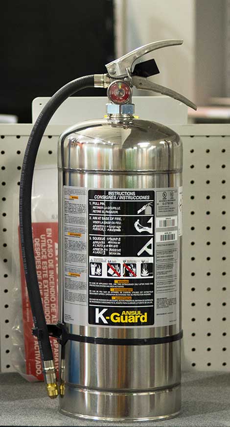 Class K extinguishers are used on fires fueled by flammable liquids unique to cooking, such as cooking oils and greases that are vegetable and animal fat-based. Extinguishers with a K rating are required where deep-fryers and/or griddles are utilized to prepare large quantities of food. An example would be a commercial kitchen similar to those found in restaurants and cafeterias. If you are in the restaurant industry, please be sure that you are using the correct extinguisher for the safety of your employees and your equipment